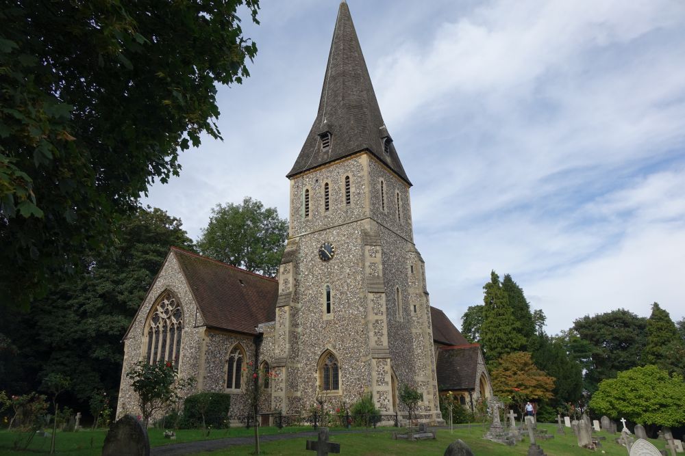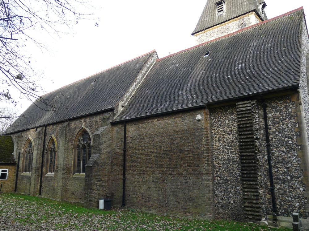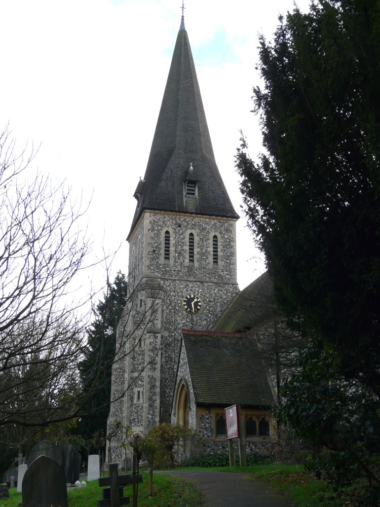 On a side road towards Broxbourne Woods well away from the modern main road Wormley. This is a Norman church restored in 1843-44 with a south aisle added by Joseph Clarke in 1862.