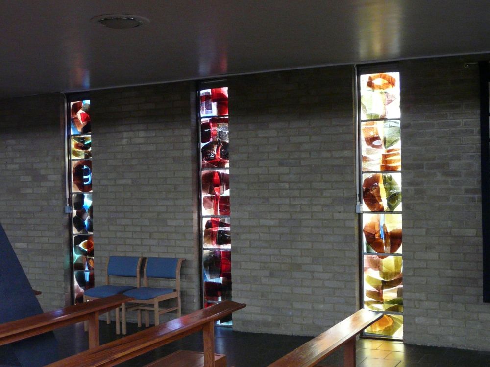 Designed by Clifford Culpin and Partners in 1965 for this large commuter village created by the railway between Hertford and Enfield. The church is raised up above ground level and features a number of fused glass windows.