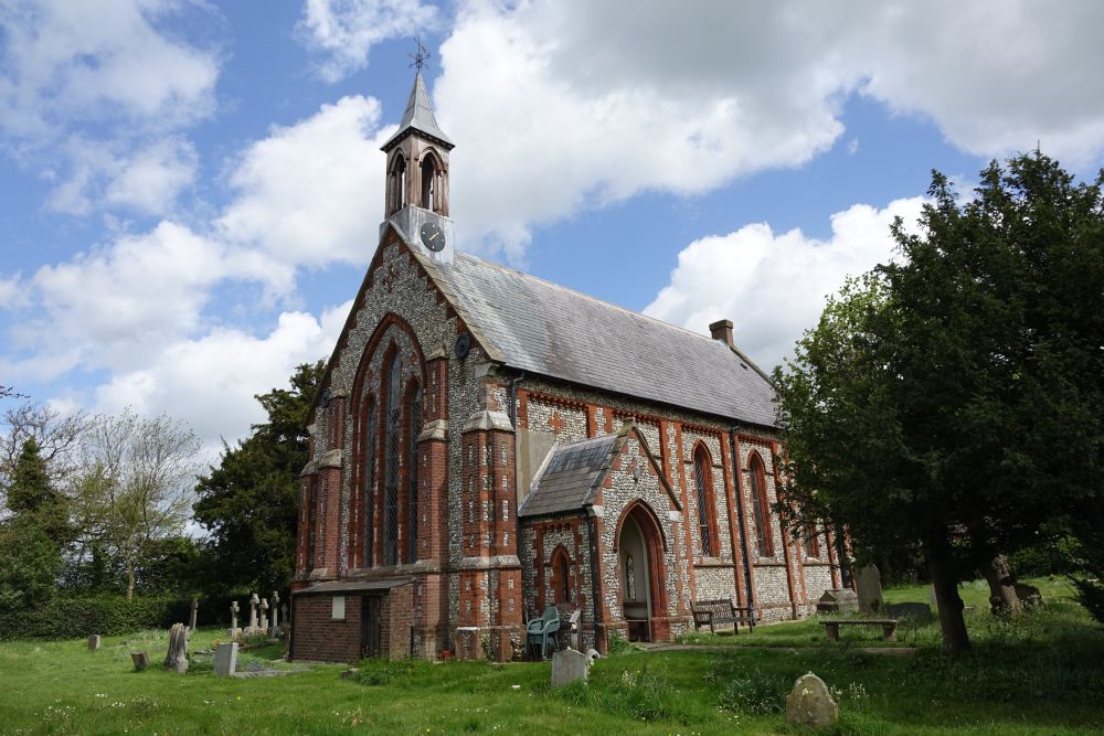 In the far west of Hertfordshire, indeed the previous church was actually in Buckinghamshire. This was George Gilbert Scott’s first church and it is very much a building of its date – 1838. The east window has John Hayward glass of 1958. The glass by David Wasley from 1999 is, unusually, in the screen rather than a window.