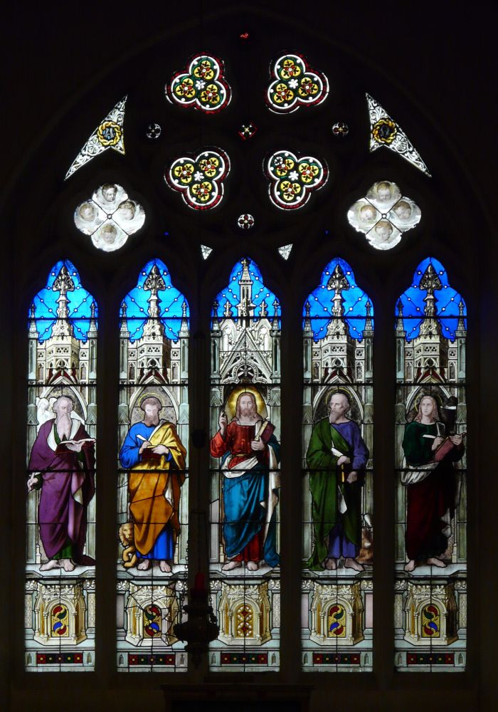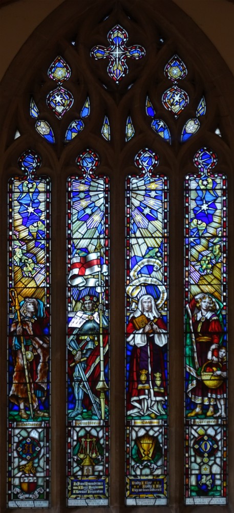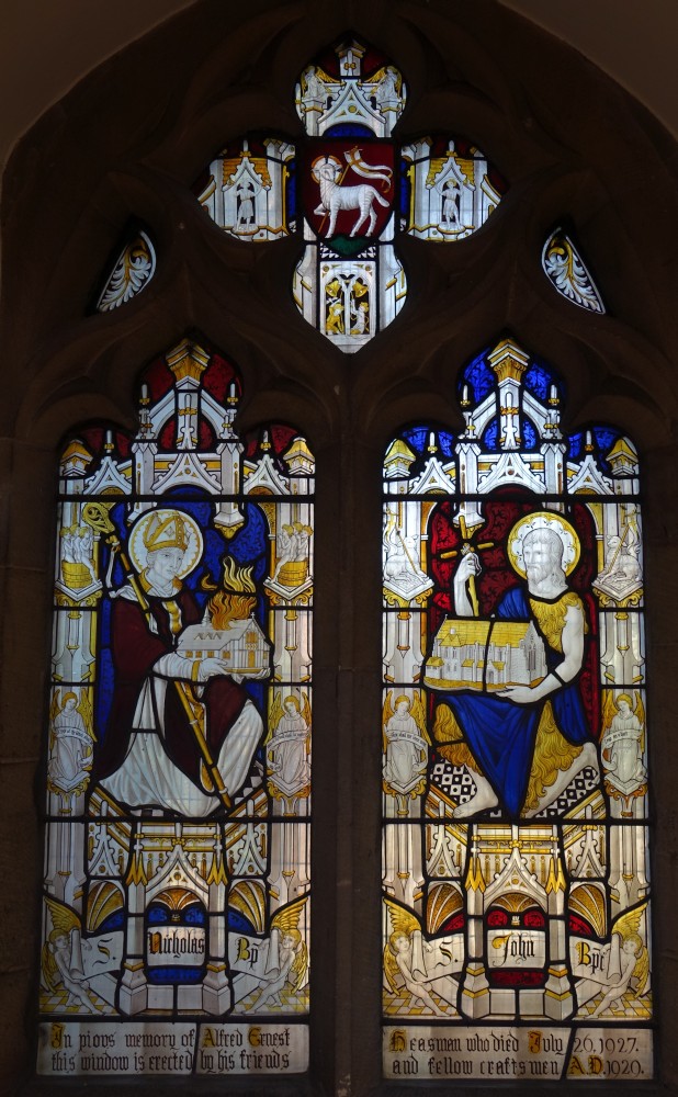 By F.A, Walters 1928-36. Next door to St Nicholas in the town centre, a very dark church as virtually every window is full of stained glass.