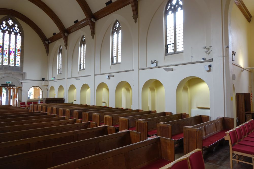 Serving the eastern side of Harpenden, lying just off the Lower Luton Road through Batford. It was built in 1965 and designed by E.P. Wilson who was a member of the congregation. It replaced a mission church of 1887.