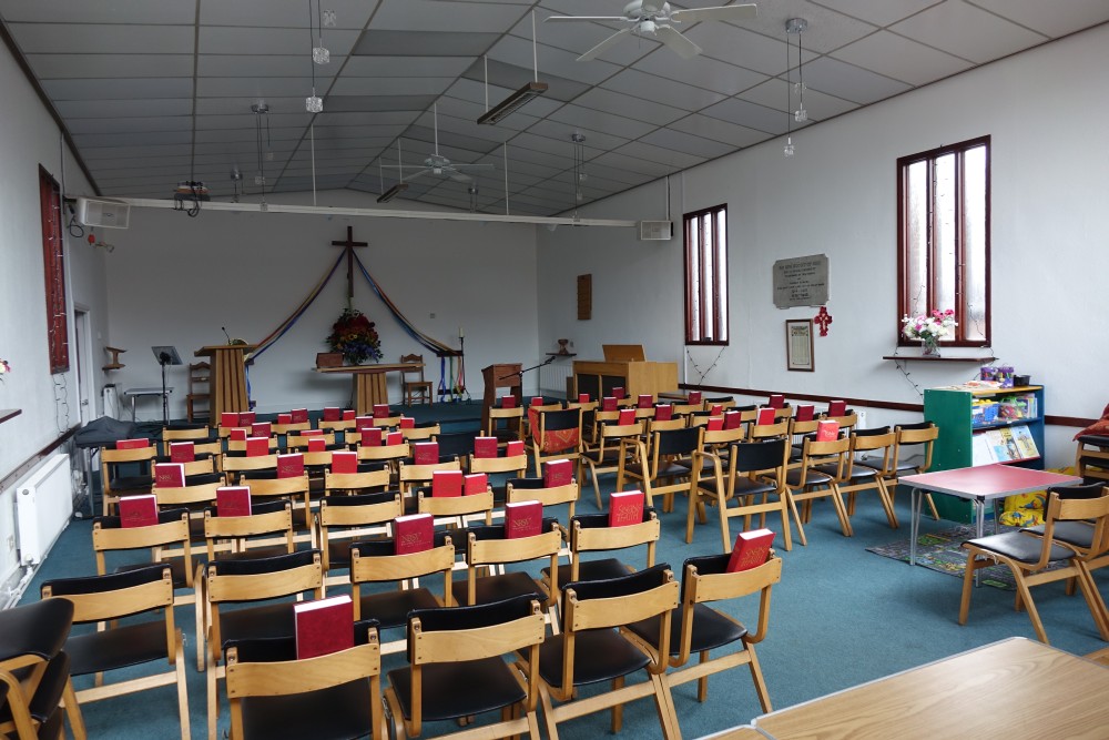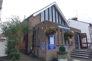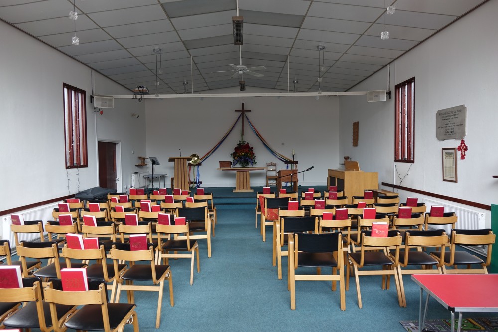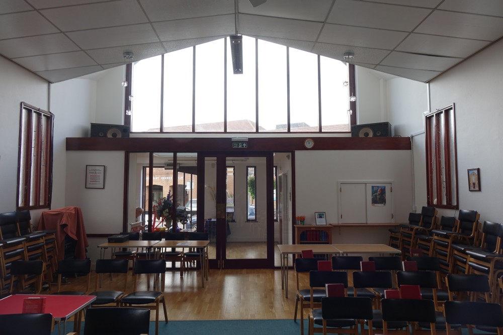 A much altered Primitive Methodist church of 1865, its current front and interior arrangements date from 1970.