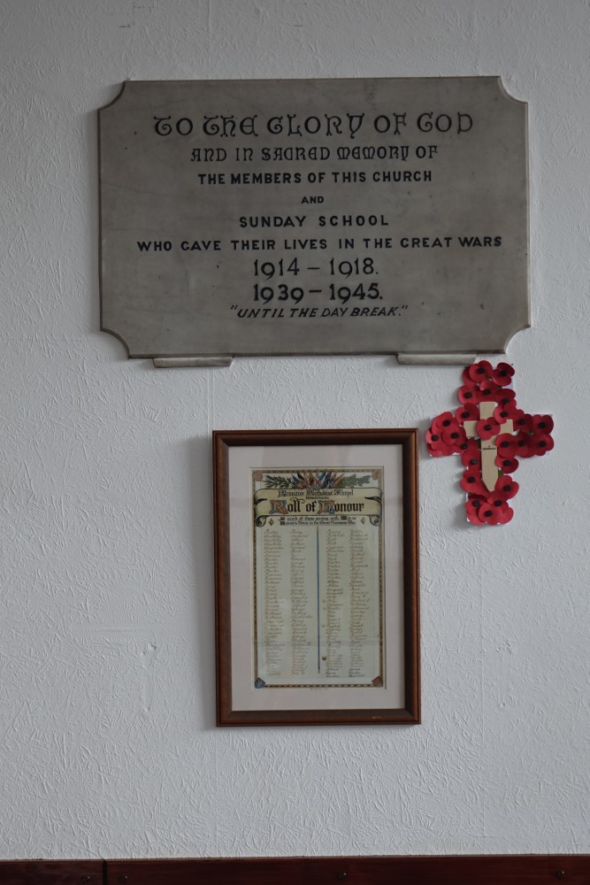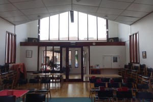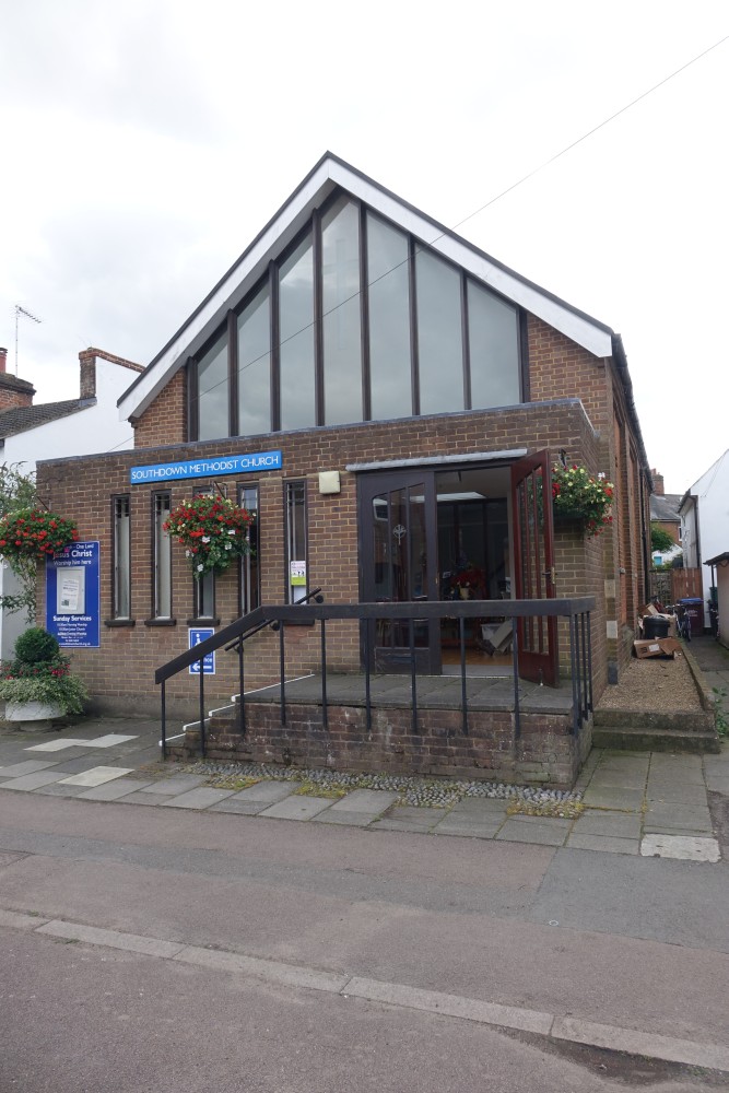 As the name suggests right in the centre of town on the High Street and open most mornings and all day Friday as there is a cafe in the hall which is in the same complex. It was built in 1929 to designs by A. Brace replacing two older churches.