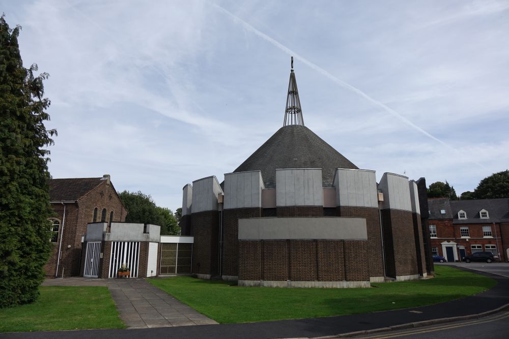 On Bishop’s Rise down the hill from St John’s and much less imposing. It was built in 1961 to designs by T.J. Denny, but cracking led to the walls and roof being lowered in 1987.
