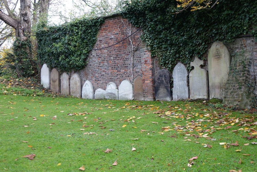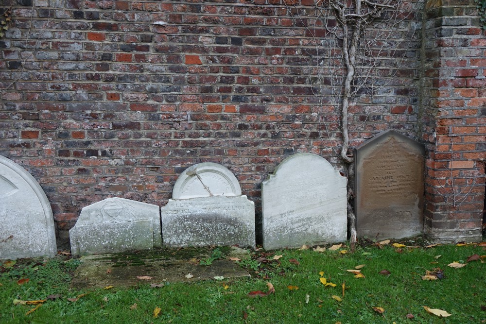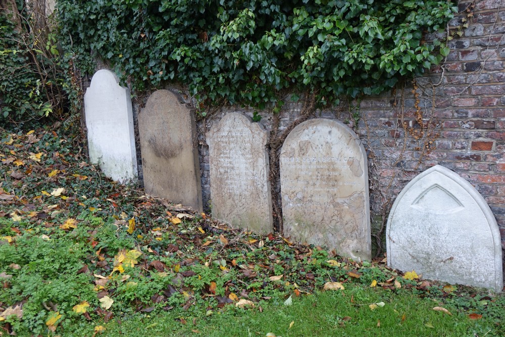 The burial ground of the Union Chapel in Chapman’s Yard, Old Hatfield was destroyed in 1965 when new housing, Park Close, was built over the site. The bodies were re-intered in a mass grave and the stones reset against a wall at the rear of the development.
