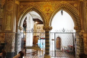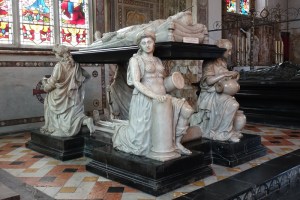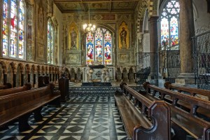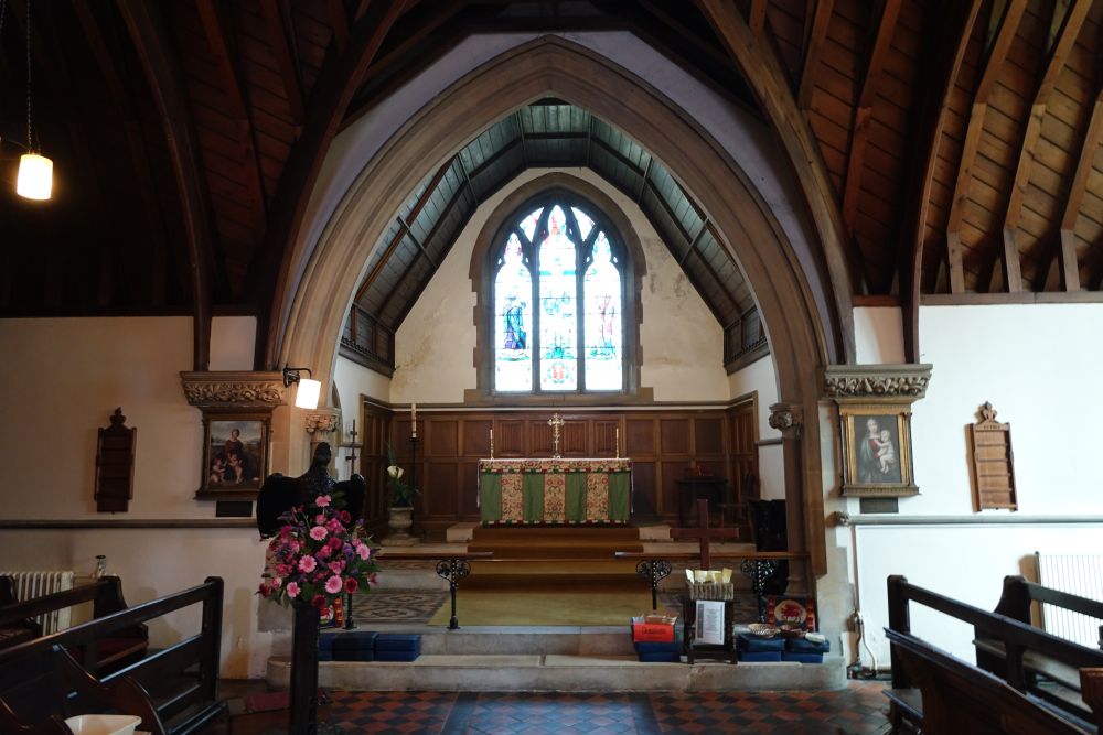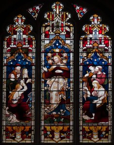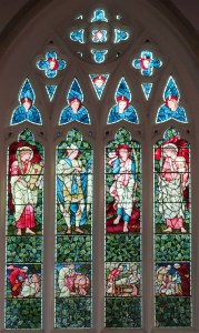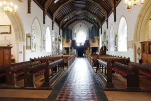 Just outside the walls of Hatfield House and Palace. Large but aisleless nave (David Brandon 1872) but substantial transepts and chancel chapels. Fine Burne-Jones glass in one transept and a war memorial window by Christopher Whall in the nave and many monuments to the Salisburys in their private chapel.