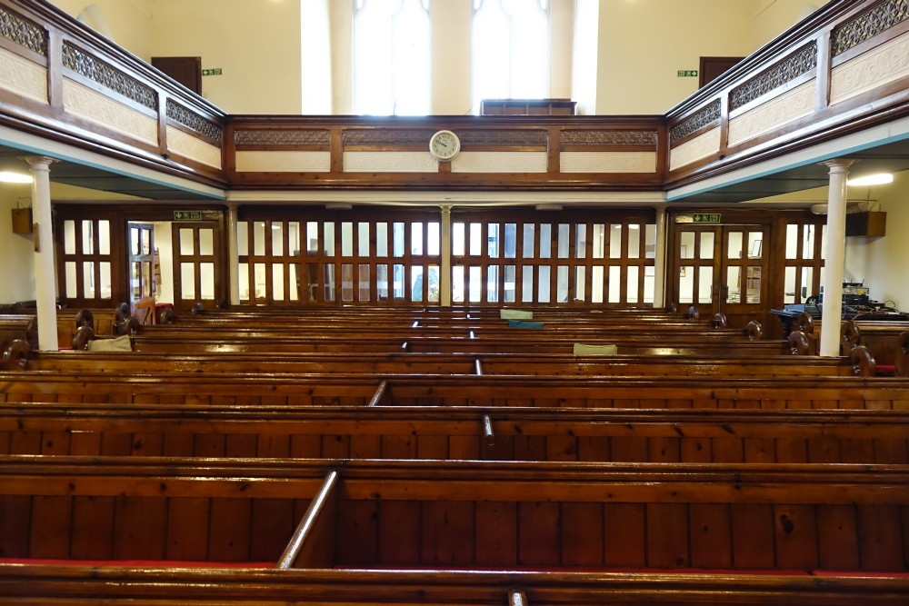 Between the new and old towns. A large independent chapel dating from 1890 and designed by W.A. Fisher. There is a slightly earlier hall next door.