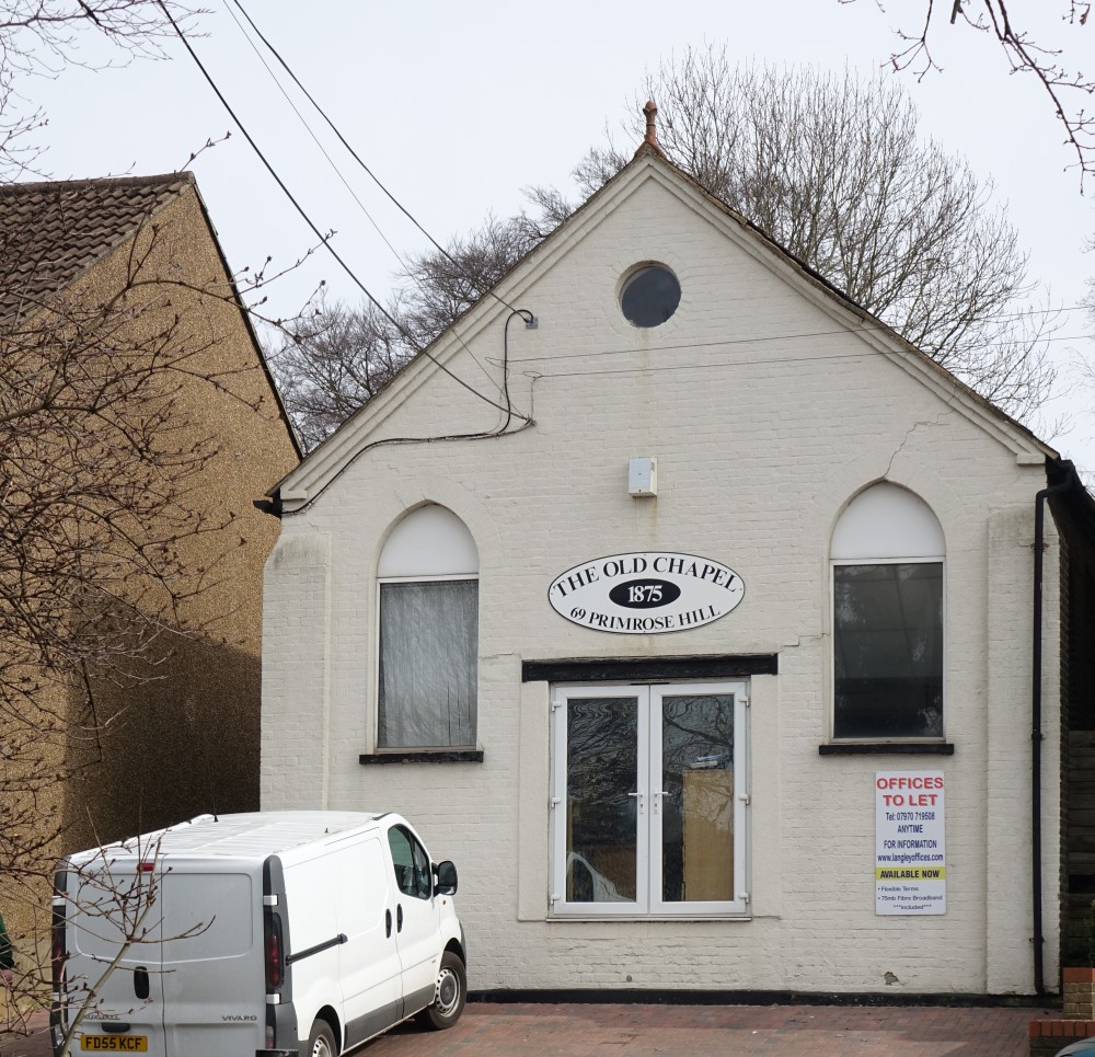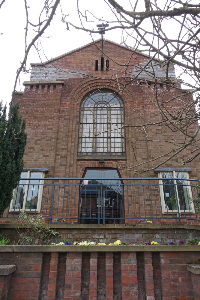 On a side turning off the main street. The church dates from 1938-39 with later halls attached. It replaced an older chapel, still there, on Primrose Hill.