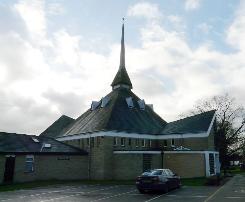 On the western edge of the town centre, the basis of the building is from 1912 and designed by a C. Green. A tower and south aisle were added in the 1960s by George Mathers. Reconstruction in 1995-99 by Anthony Delarue turned the church by 180 degrees and added a new aisle.