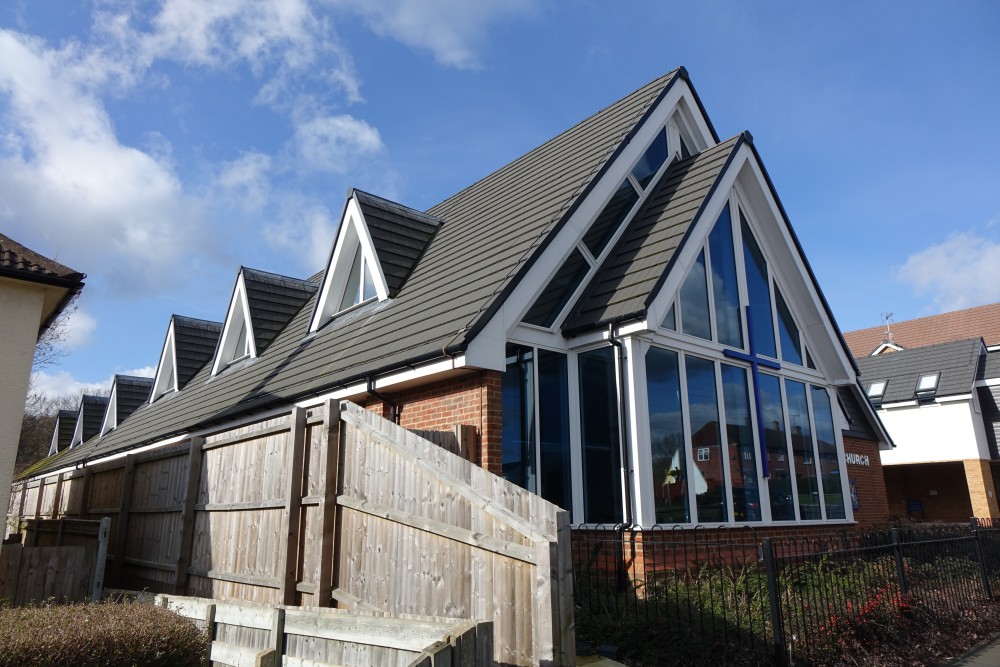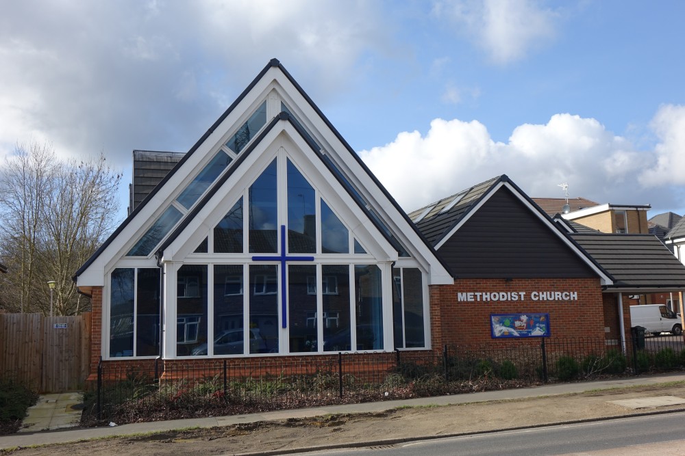 In suburban Hemel Hempstead. Opened in 2015, this church replaced a town centre building demolished in 2014 and an older building on this site. The worship area is at one end as part of a larger development of ancillary rooms by Life Build Solutions.