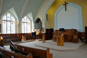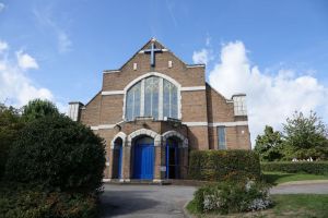 A short way south of the town centre a large hall and church complex. The church dates from 1940 with additions of 2005. The chancel stained glass by Goddard & Gibbs was installed in 1972.