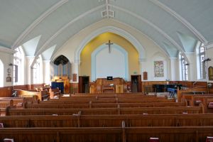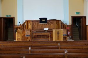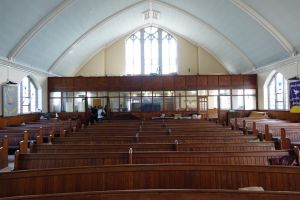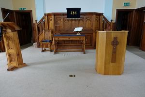 Just north of the town centre it was built in 1968-69 to replace the former Methodist churches at Brand Street and Nightingale Road and Queen Street Congregational church. The alignment of the interior has been switched round by 90 degrees with ancillary buildings added on the north side in 2001, designed by Lewis Patten.