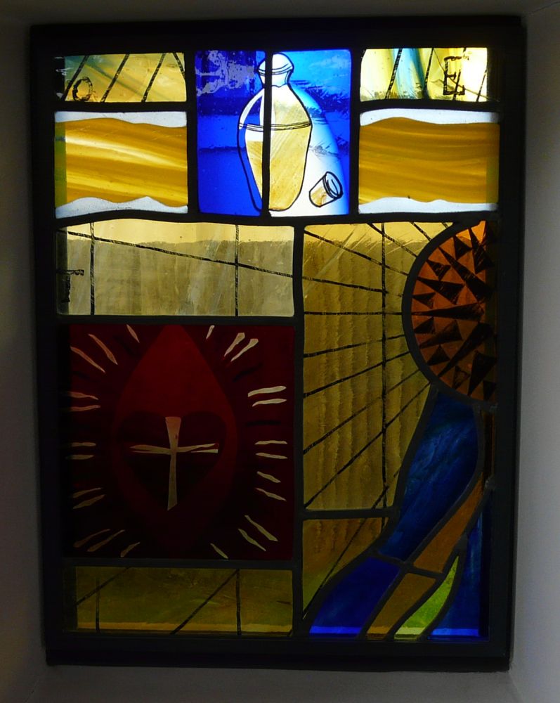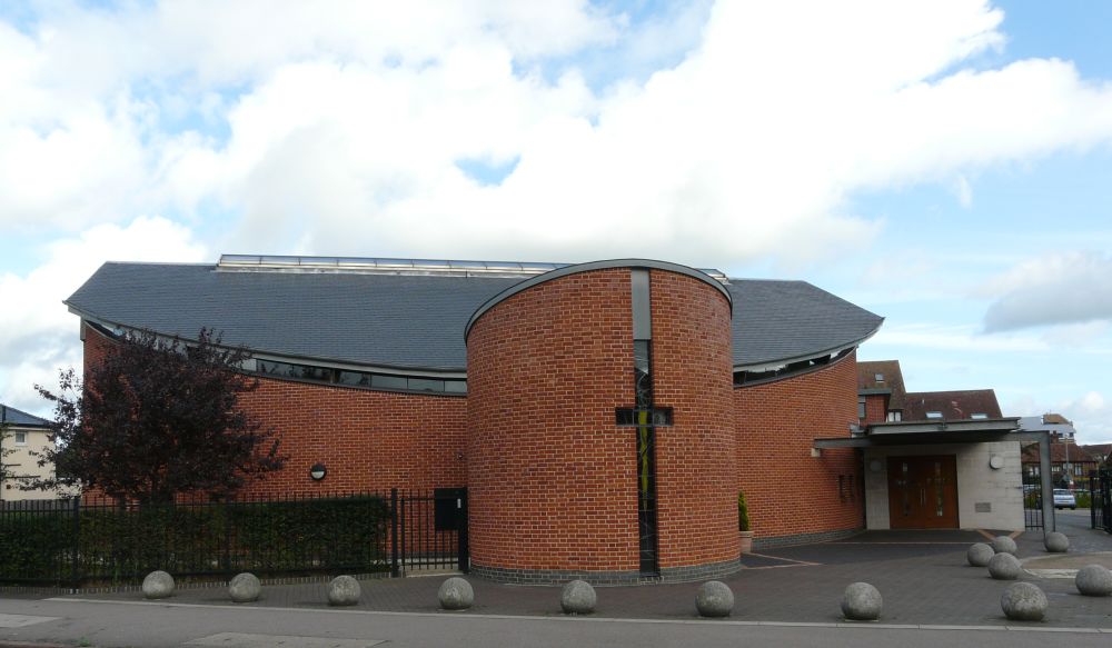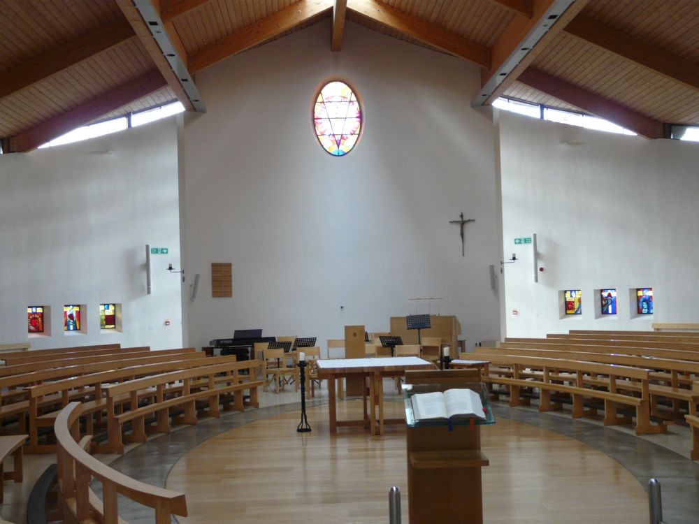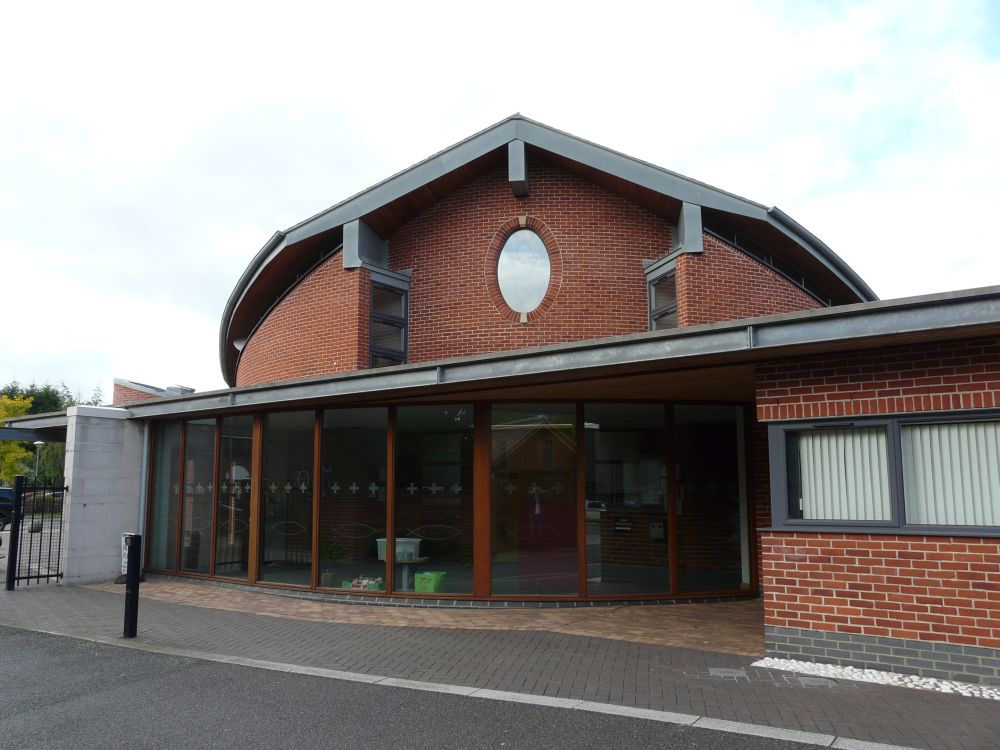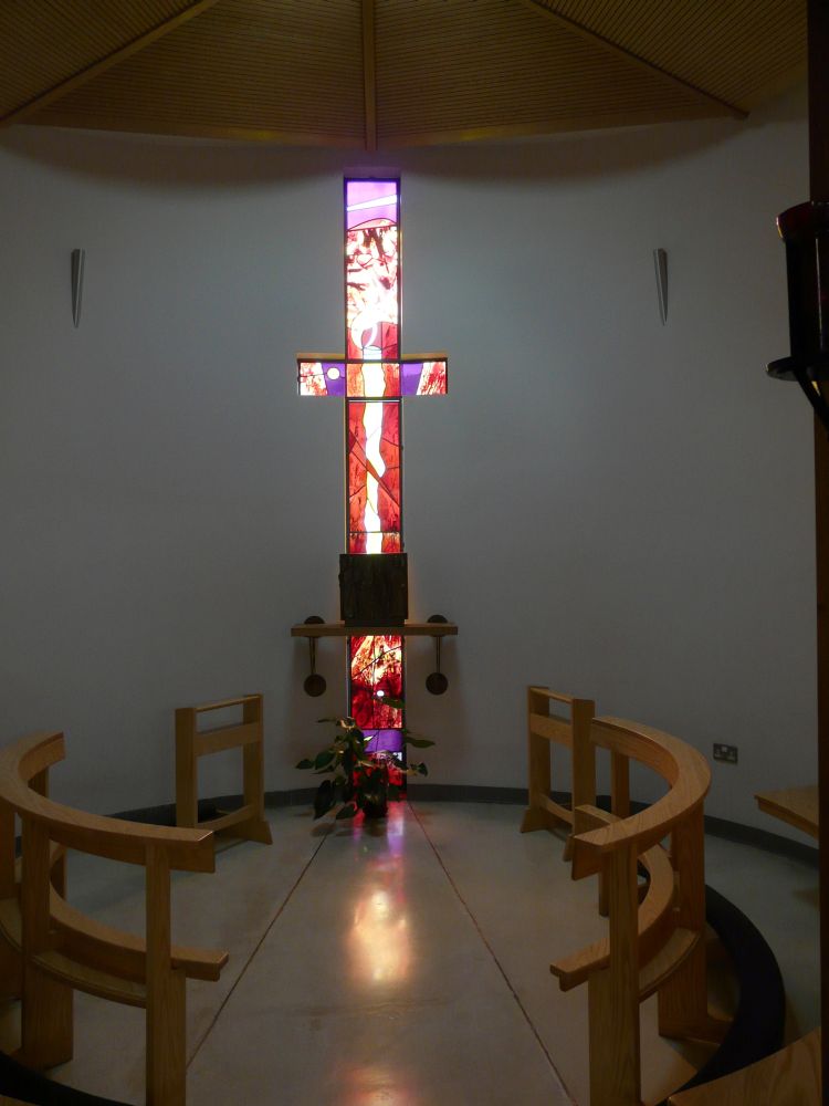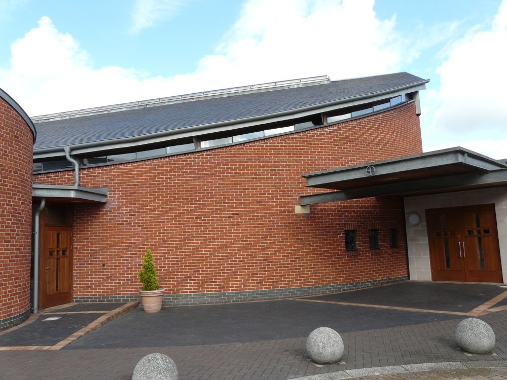 Designed by Francis Weal and Partners and built in 2003-05 to replace two earlier churches in the town. The glass is by Alex Le Rossignol.