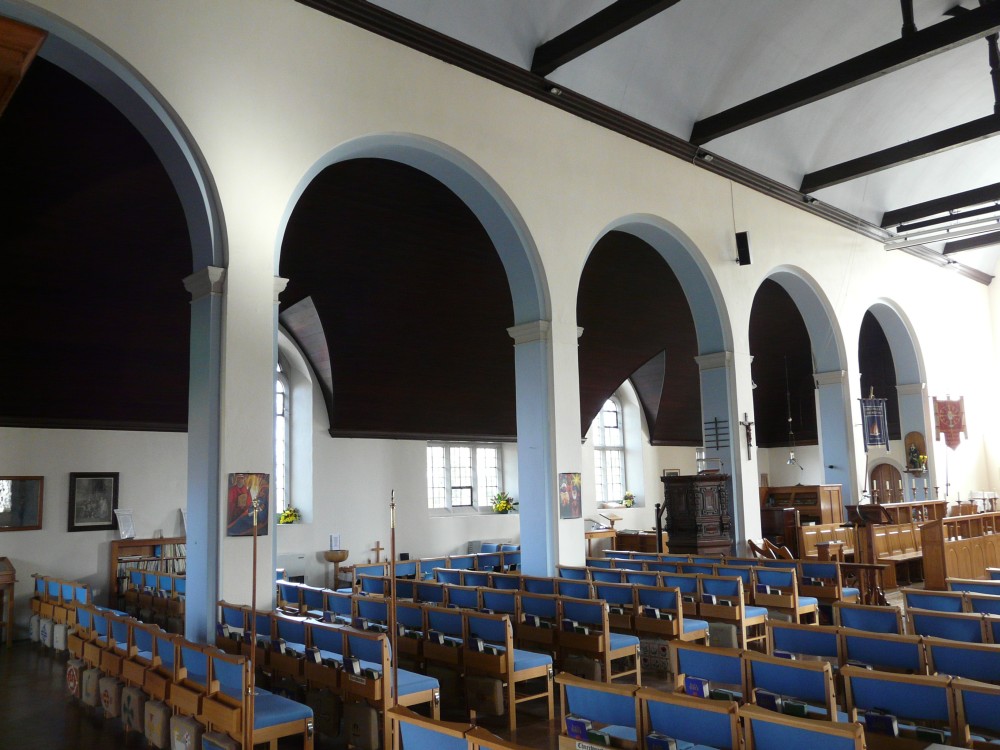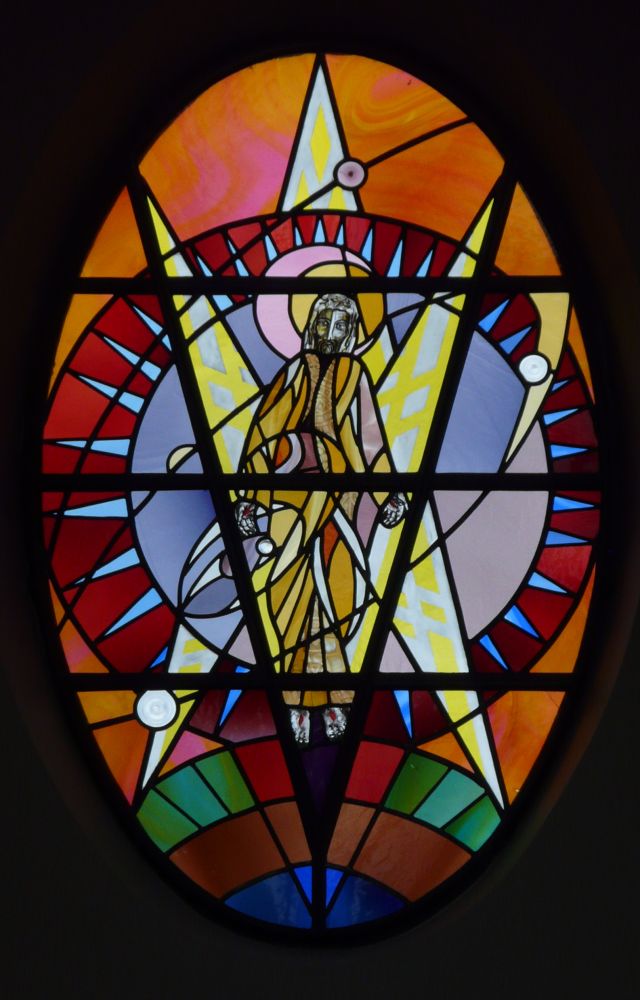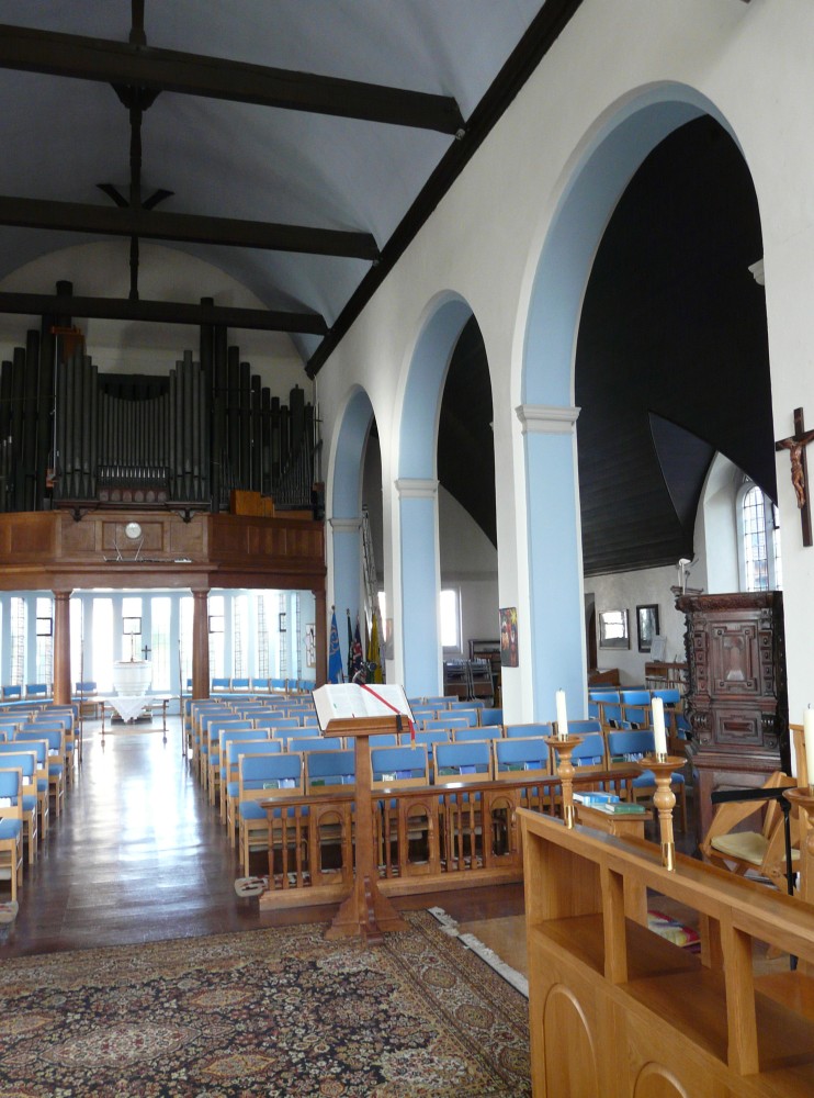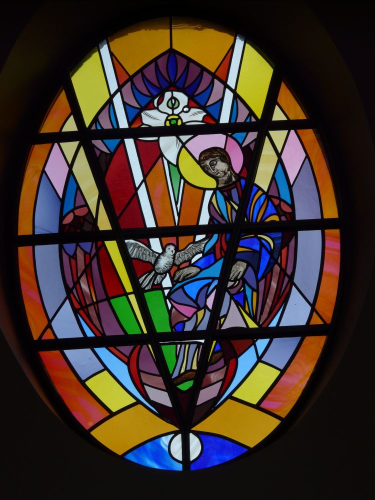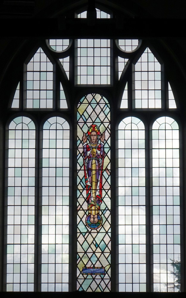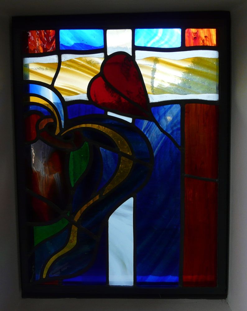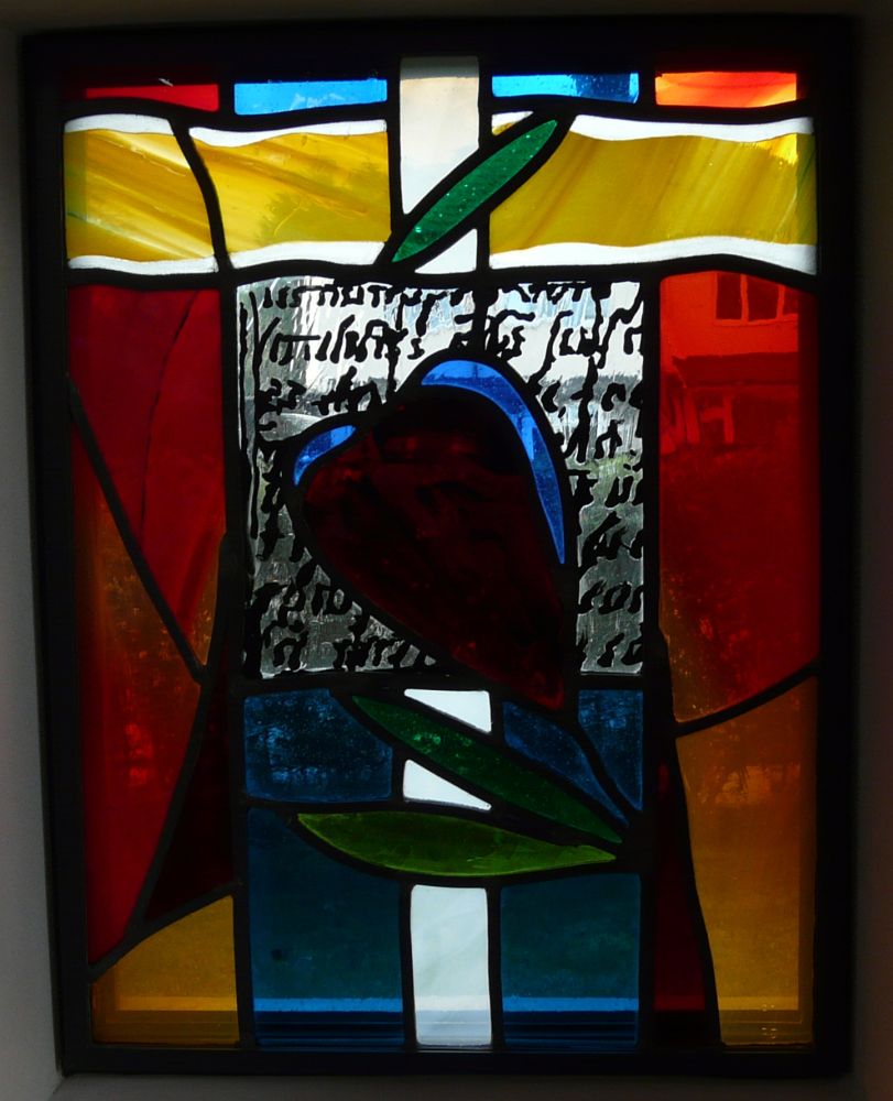 Designed by Francis Weal and Partners and built in 2003-05 to replace two earlier churches in the town. The glass is by Alex Le Rossignol.