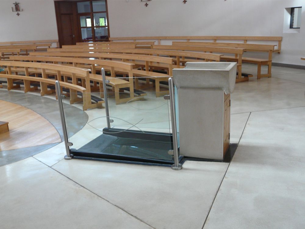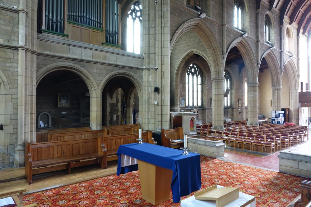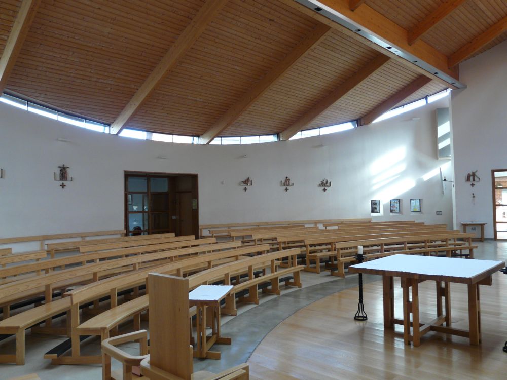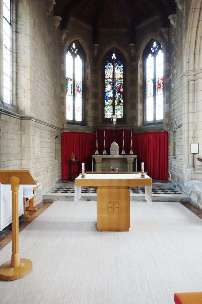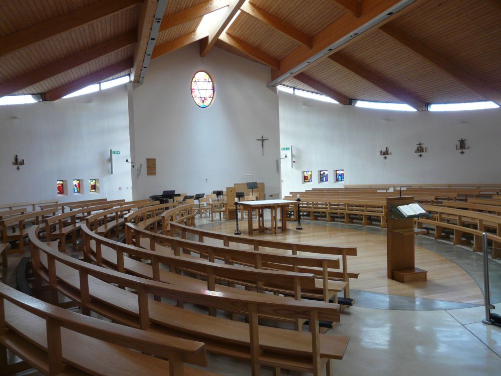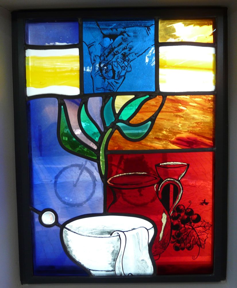 Designed by Francis Weal and Partners and built in 2003-05 to replace two earlier churches in the town. The glass is by Alex Le Rossignol.