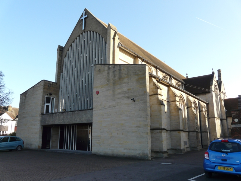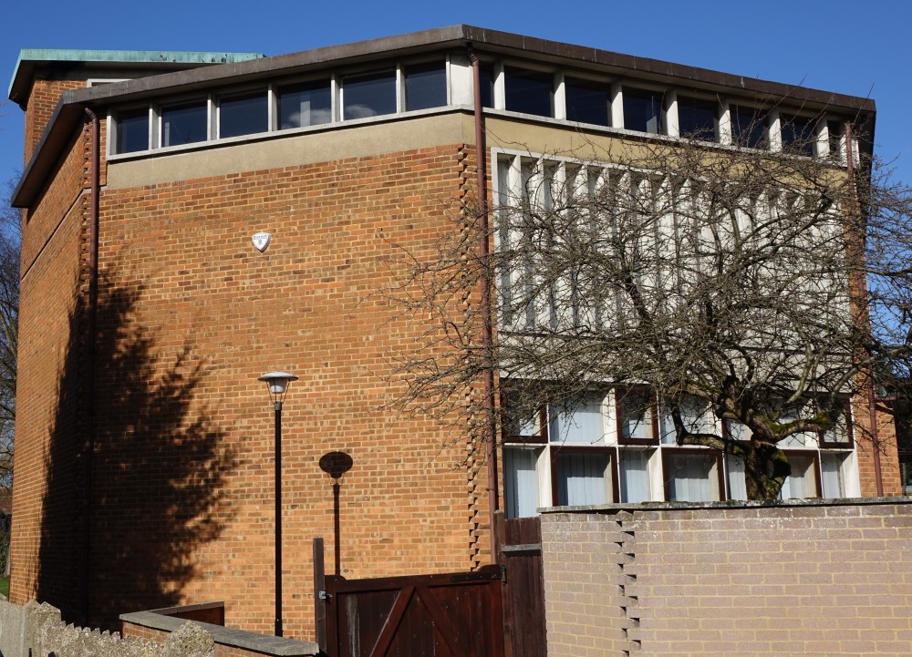 A short walk north of the railway station, this is a church and hall of 1965 by The Haines Design Partnership.