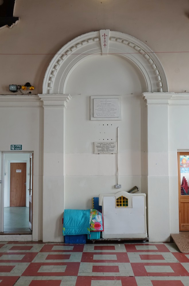There are three main buildings here. The current church opened in 1964, the older church dating from 1868, designed by W. Allen Dixon, and at right angles to the rear of the old church another building (Sunday school?) of 1888. All are connected by various ancillary rooms, the older buildings now being used as halls The modern church has a conservatory type frontage added to provide a refreshment/circulation area.