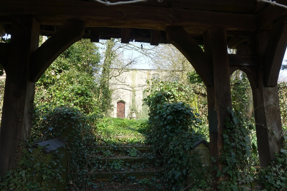 Seemingly disused, this chapel was built over the grave of Robert Hugh Benson (died 1914), a son of the Archbishop of Canterbury who converted to Roman Catholicism. It stands in the grounds of Hare Street House where he lived and which was bequeathed to the Archbishops of Westminster as a country home. The exterior can be seen through a locked lych gate on the B1038 towards Great Hormead. Apparently a brew house in the grounds (not publicly visible) was also converted to a chapel.