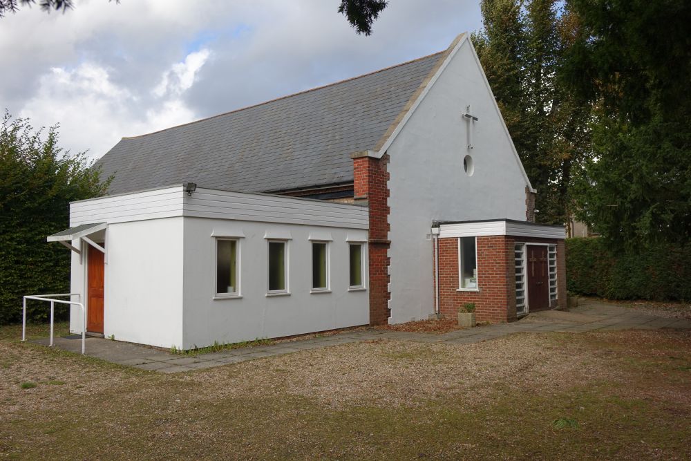 Alongside the main road to Harlow, just south of the town centre. The church opened in 1863 to designs by Poulton and Woodman, the northern extensions date from 1911.