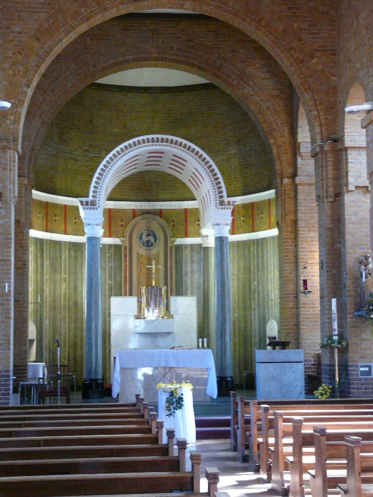A typical 1930s style brick basilica. It was built in 1930-31 and designed by T.H.B. Scott.
