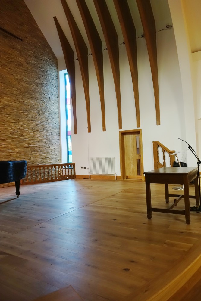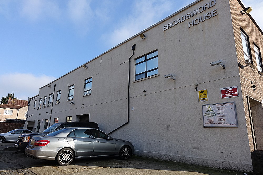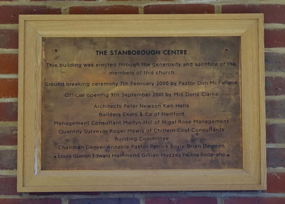 The church dates from 1927-28 and was designed by Broad and Patey. It was extended and galleries added in 1962. The Stanborough Centre with meeting rooms was added in 2001 and the church was extended and refurbished between July 2014 and October 2015.