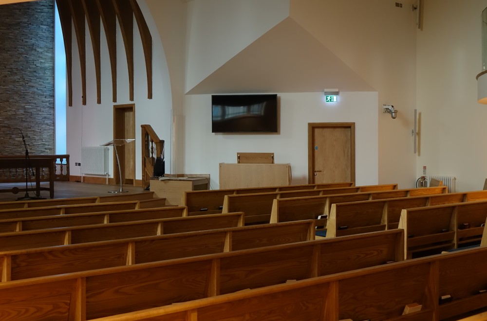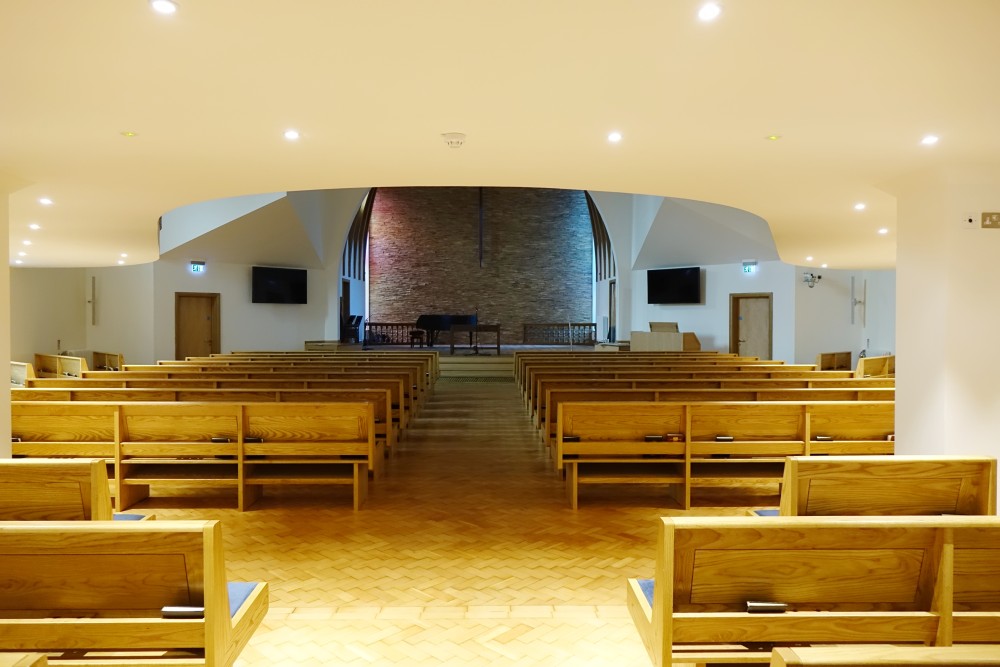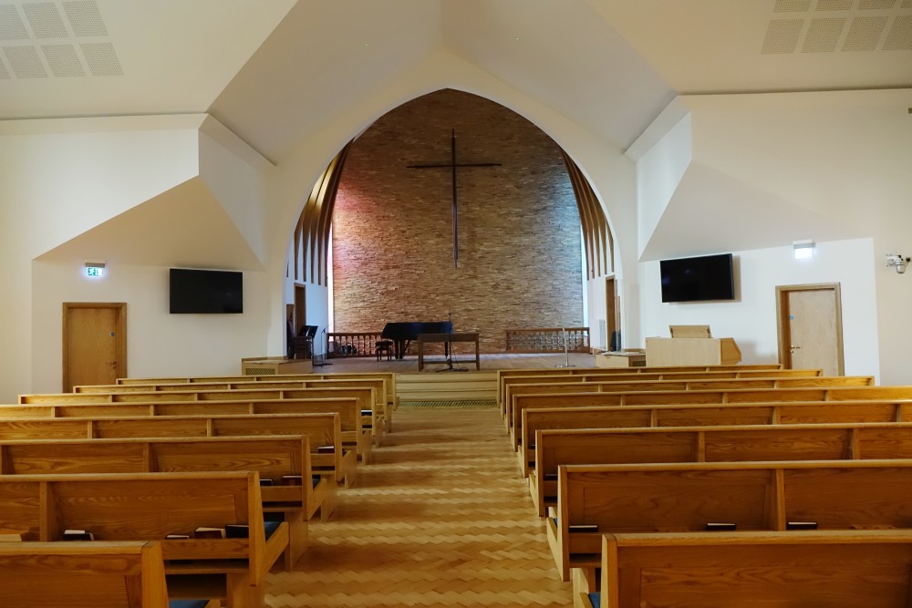 A short way north of St Peter’s church just outside the city centre. The church dates from 1980-81 and is over the road from administrative offices for the church.