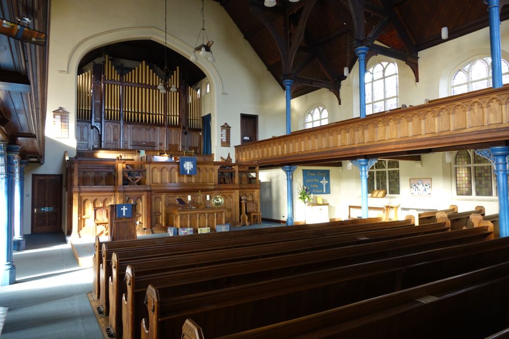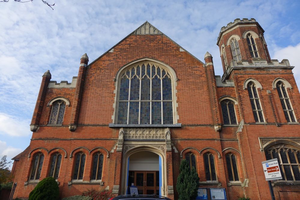 Just off the town centre, a large building of 1884-85. The interior accessible between 10 and 2 via the associated Cross Street Centre. It was designed by Morton M. Glover.