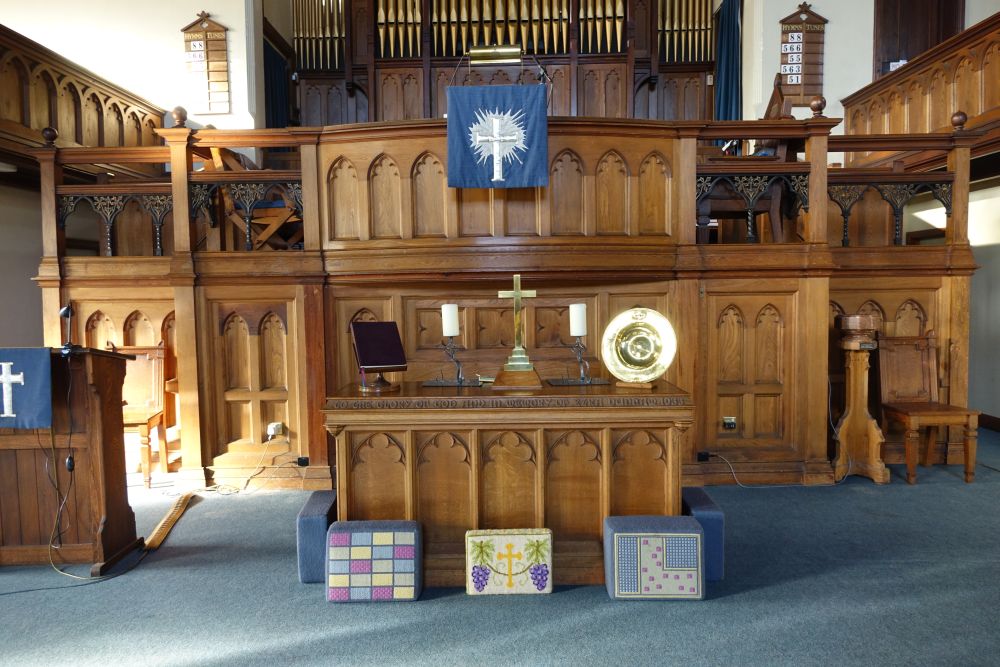 In the north eastern suburbs of St Albans, it was built in 1955 and became a parish church in 1972.The stained glass east window was made by parishioners in 1987-88.