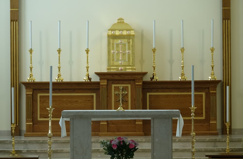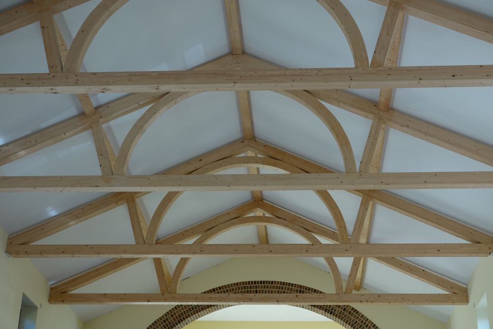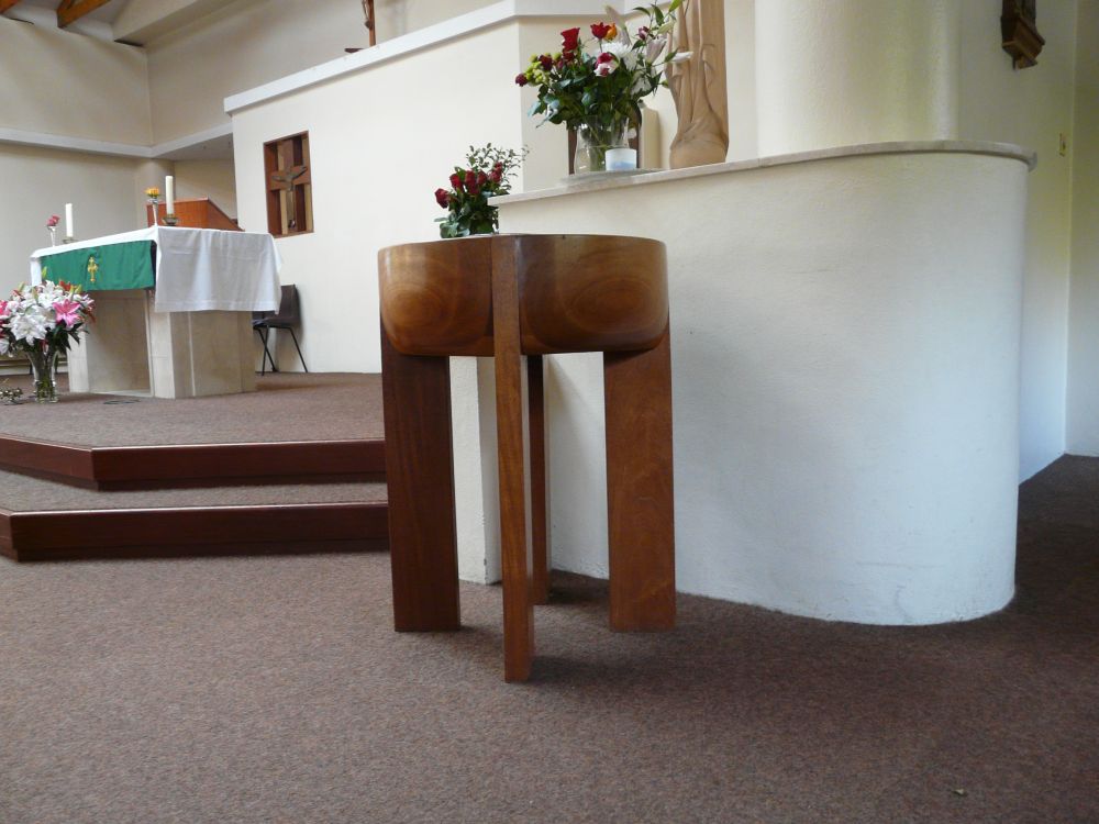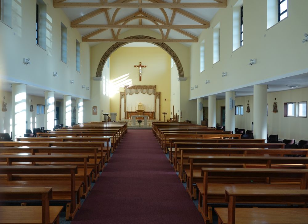 Built in 1957 to designs by Sterrett & Blouet, with a rebuilding and reversal of orientation following roof problems in the 1980s. This was to designs by Williams & Winkley. Only the tower remains from the original building. Part of the church was divided off to form halls. A further redevelopment took place in 2016-2017 which has reversed the orientation of the church, added a sanctuary, clerestory and new roof. The Lady Chapel that was previously behind the sanctuary is now the entrance narthex area. This work was designed by John Willcock. The right-hand column shows the new church layout, the left the previous one.