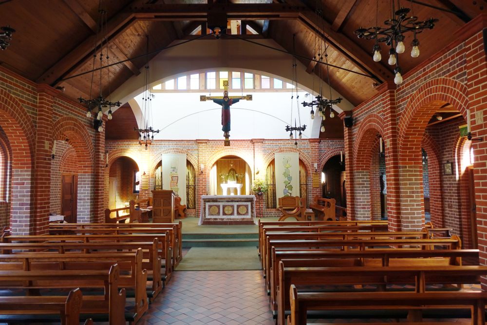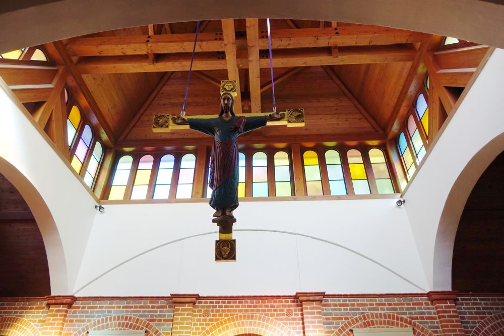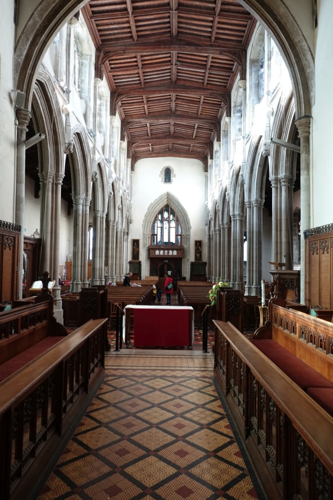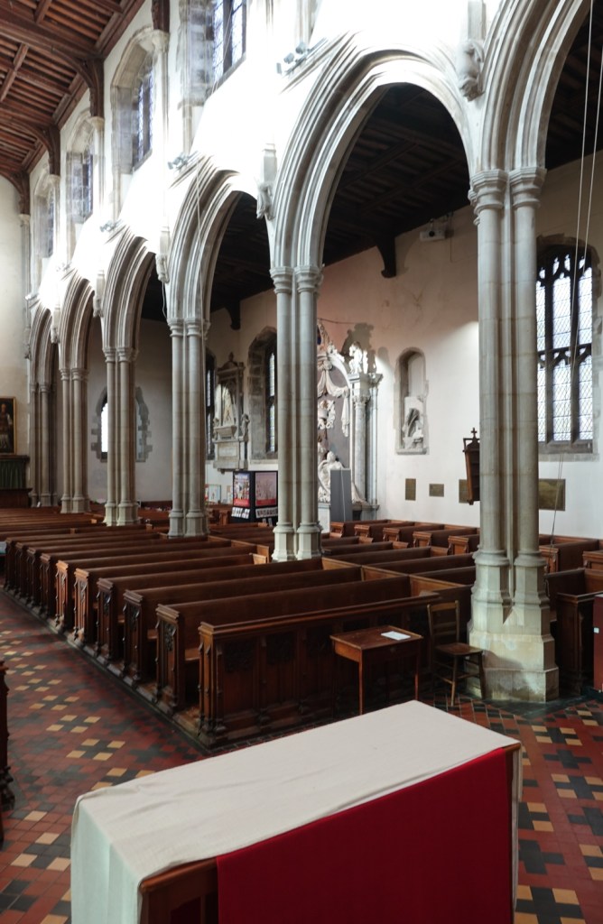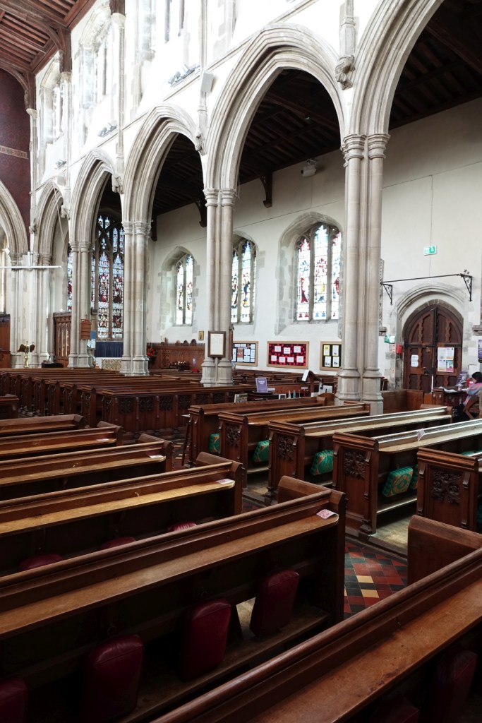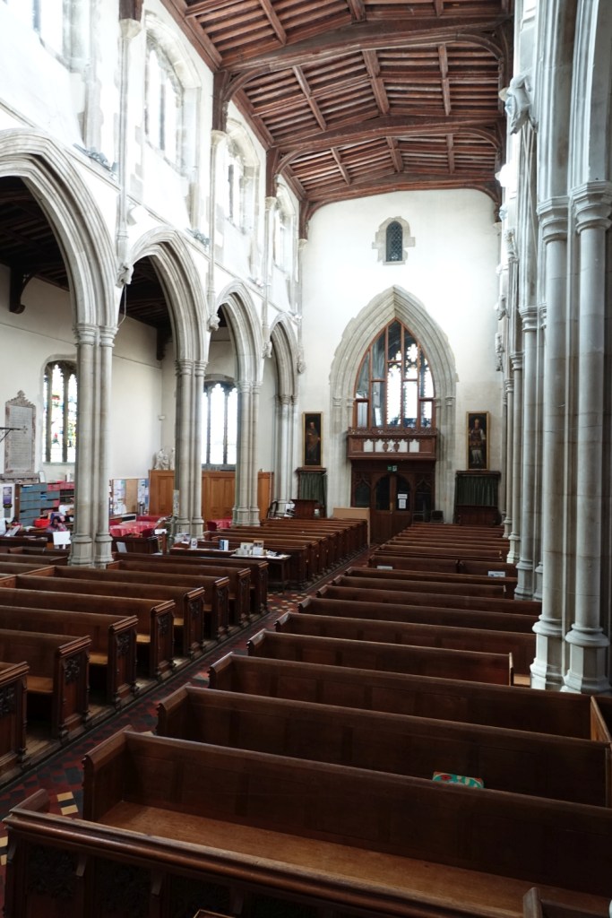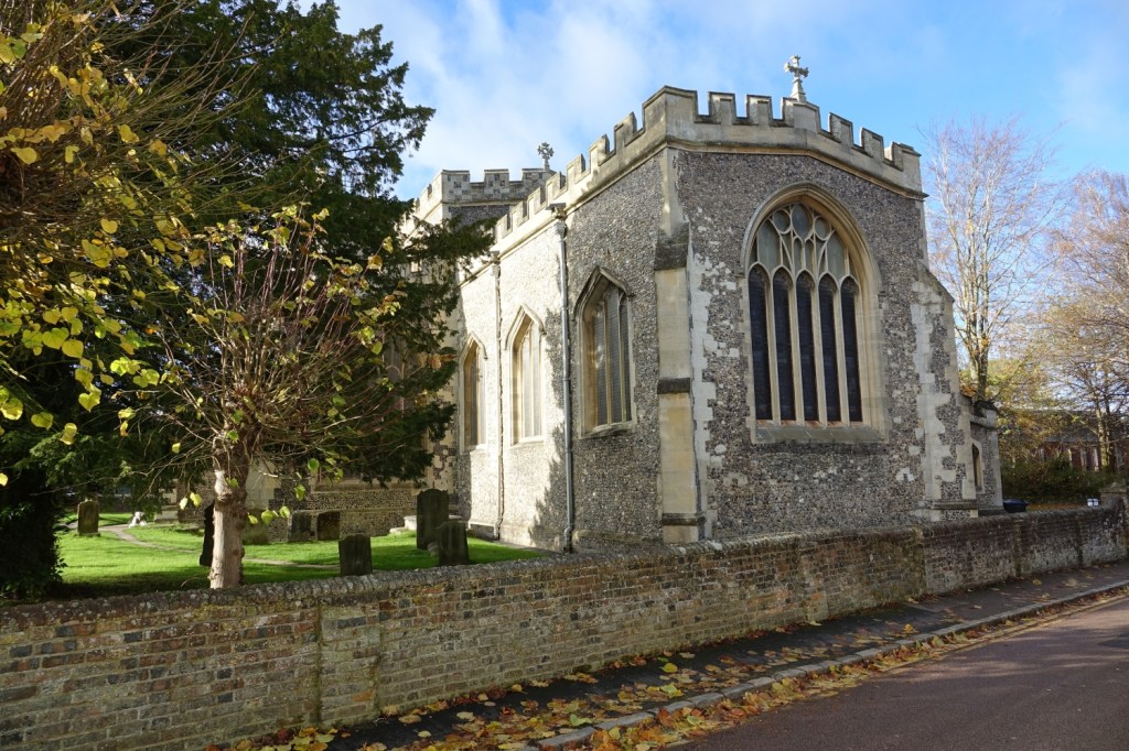 On the western edge of the town centre, the basis of the building is from 1912 and designed by a C. Green. A tower and south aisle were added in the 1960s by George Mathers. Reconstruction in 1995-99 by Anthony Delarue turned the church by 180 degrees and added a new aisle.