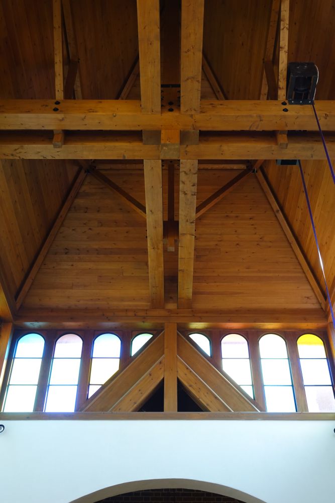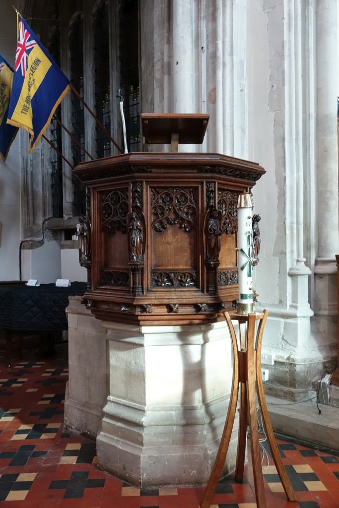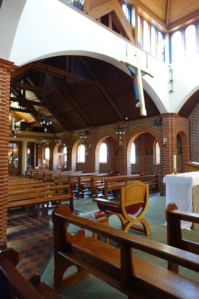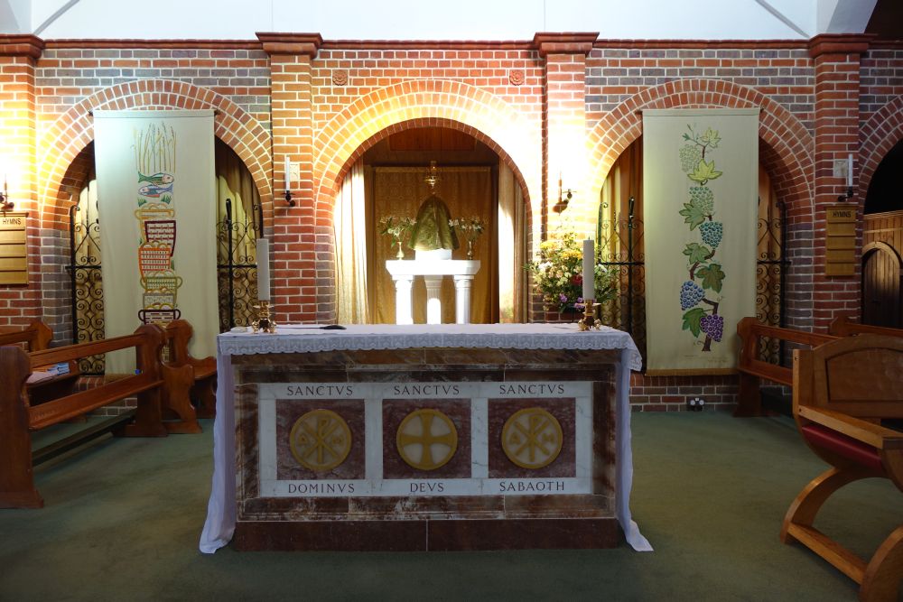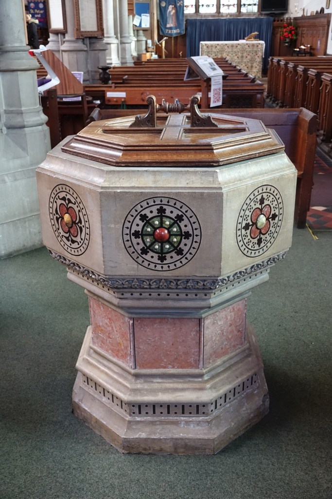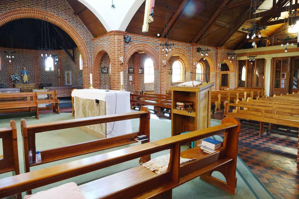 On the western edge of the town centre, the basis of the building is from 1912 and designed by a C. Green. A tower and south aisle were added in the 1960s by George Mathers. Reconstruction in 1995-99 by Anthony Delarue turned the church by 180 degrees and added a new aisle.