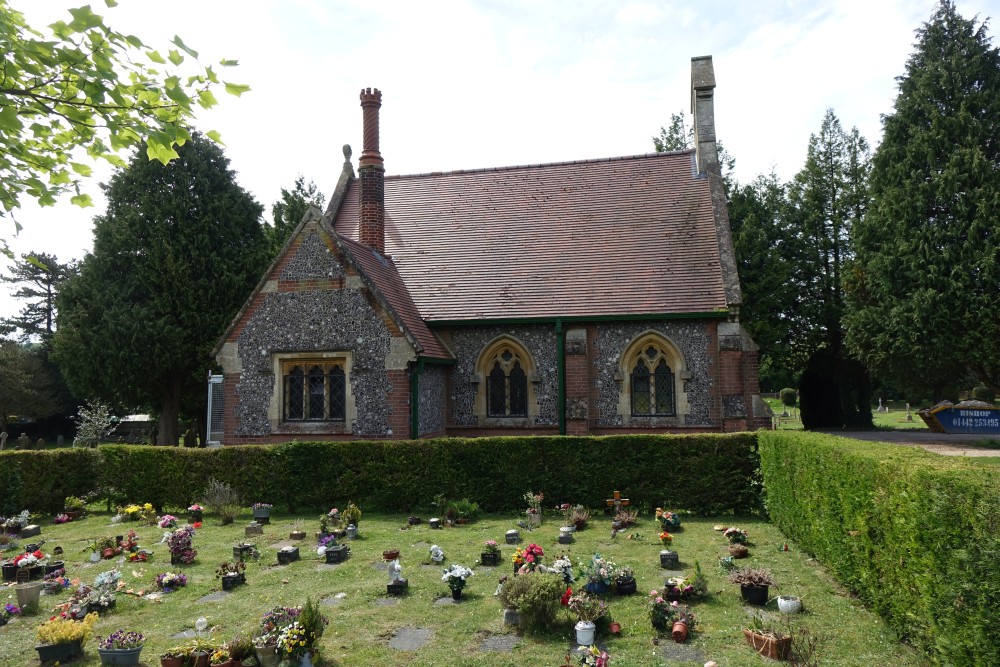 At the western edge of the town, a small kept cemetery opened in 1894. The chapel is normally open.