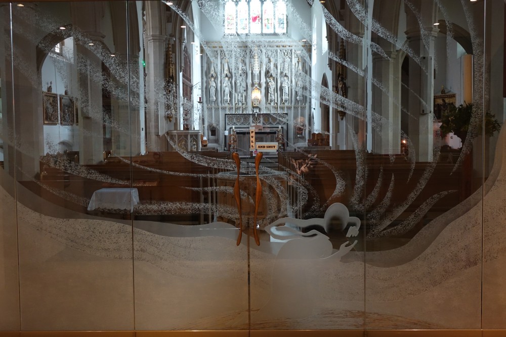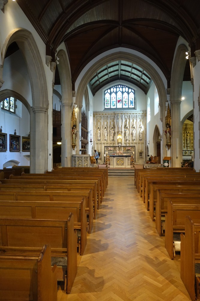 By F.A, Walters 1928-36. Next door to St Nicholas in the town centre, a very dark church as virtually every window is full of stained glass.