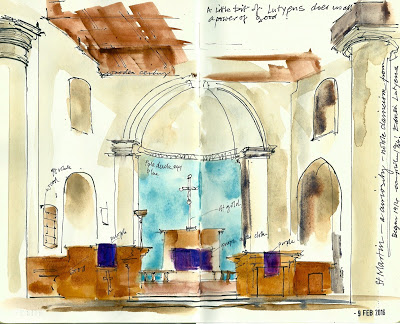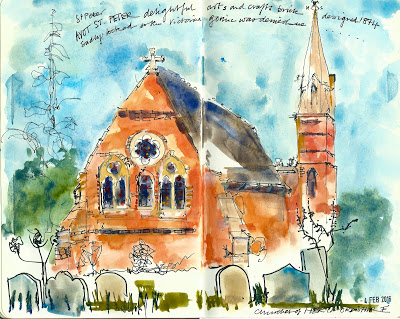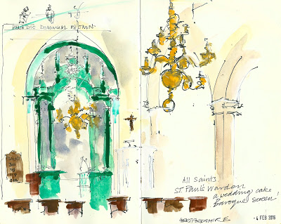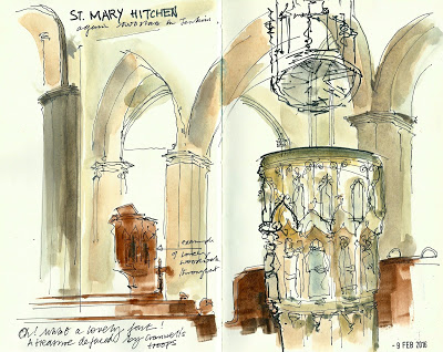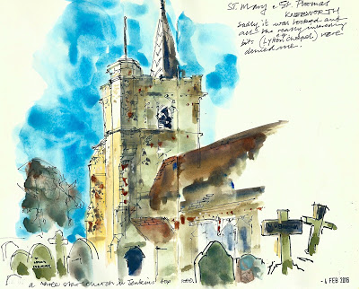 Tim Baynes has been visiting some Hertfordshire churches and has made these colour wash drawings of some of the churches